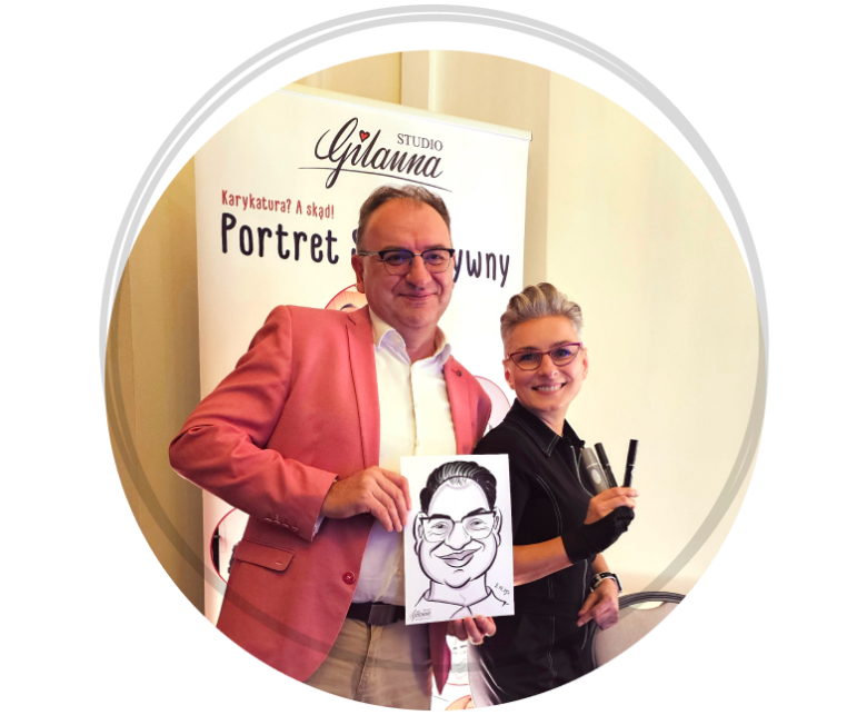Kiedy siadam do nad czystą kartką, natychmiast pojawiają się zaciekawieni goście. Wyciągają telefony, nagrywają proces powstawania rysunku, śmieją się i nawiązują rozmowy. To naturalny “lodołamacz”, który rewelacyjnie rozkręca atmosferę każdego spotkania.
